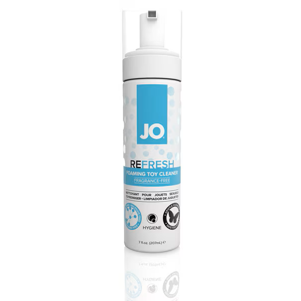 Take care of intimate items with JO® REFRESH FOAMING TOY CLEANER. Designed to clean with a gentle formula that is both fast acting and leaves no residue.