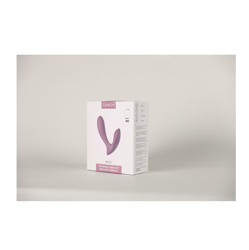 Erica has a curved head for smoother insertion vaginally or anally and a narrow neck for comfortable wear. The curved external stimulator can be positioned to target the clitoris or perineum. Both the shaft and stimulator are flexible to move with the body and ribbed to enhance vibrating sensations. When Erica is controlled manually via a button on the toy, both ends vibrate. When used with the SVAKOM App, the ends can be controlled together or separately. The app also allows for customization, long-distance play and partner interaction.