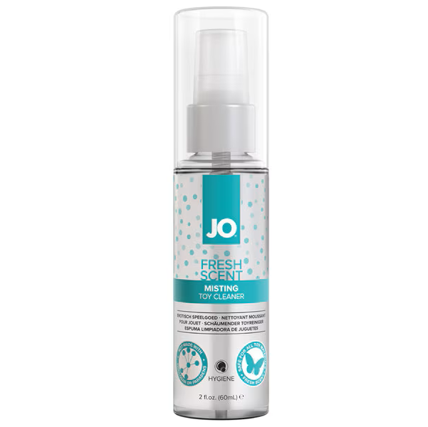 Introducing the NEW JO Travel-Sized Misting Toy Cleaner. Whether you're at home or on the go, the JO Misting Toy Cleaner provides a fast, reliable solution for keeping your toys in perfect condition. With its mild yet effective formula, this travel-sized spray allows you to clean and refresh your toys in just one minute. Simply spray, rinse, and enjoy the clean, fresh scent.