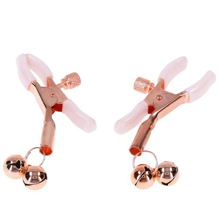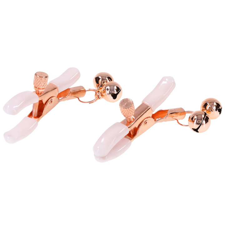 Ding, ding, ding! You've made the right choice with the Peaches 'N CreaMe Bell Nipple Clamps. Adjustable to cling as firmly as you like, just dial up the pressure to match your mood. Wrapped in soft, body-safe rubber for comfort and grip, these clamps stimulate blood flow for heightened sensitivity. Adorned with rose gold bells that jingle with every movement, signalling that playtime is in full swing. Let the bells chime as you tease your way to bliss.