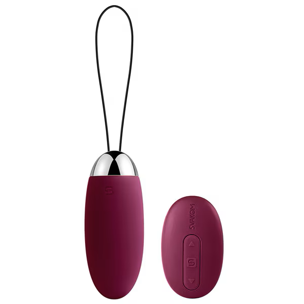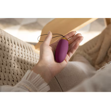 Elva resembles an elongated egg, with a rounded head that delivers focused vibrations to the clitoris or other external erogenous zones. The shaft is rigid for a fuller sensation when inserted vaginally and features a very slim, durable retrieval loop for easy removal and discreet wear under clothing. Settings can be explored via the toy or remote control. Use the remote to access Intelligent Mode, where
